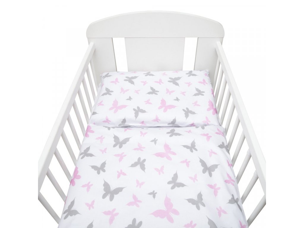 2-dílná dětská ložní souprava do postýlky s obrázky. Obsahuje povlečení na polštářek cca 40 x 60 cm a povlečení na peřinku cca 100 x 135 cm.