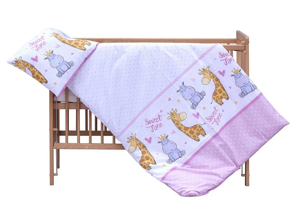 2-dílná dětská ložní souprava do postýlky s obrázky. Obsahuje povlečení na polštářek cca 40 x 60 cm a povlečení na peřinku cca 90 x 120 cm.