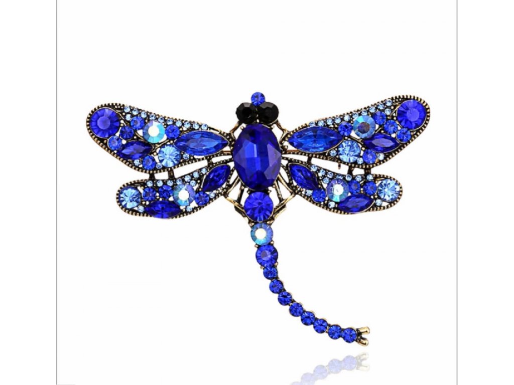 Luxusní velká dámská retro brož - vážka s krásnými modrými kamínky.