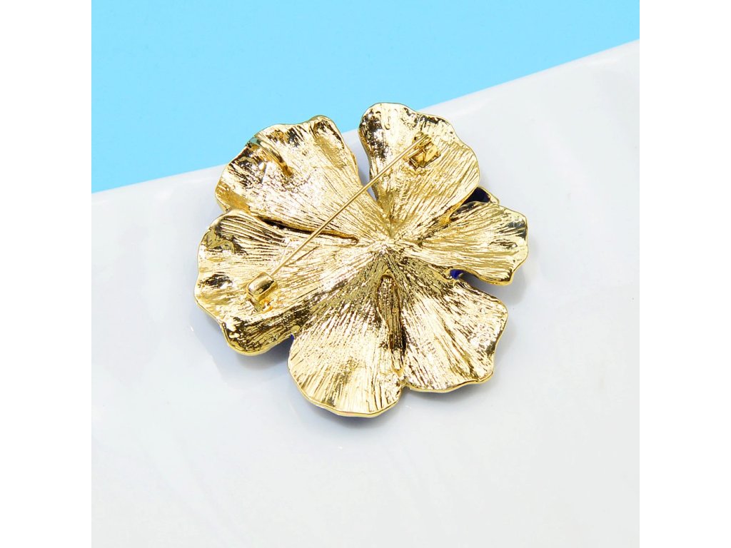 Krásná luxusní brož ve tvaru velkého květu v korálově modré barvě.