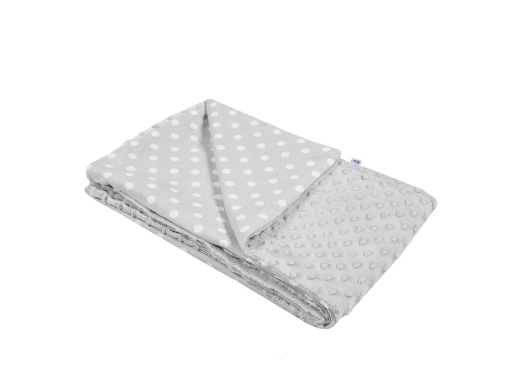 Dětská deka New Baby je vyrobená ze dvou typů tkanin. První je velmi měkká, hebká a na dotek příjemná Minky látka s výstupky pro stimulaci senzomotoriky a druhá je 100% bavlna s obrázky a vzory. Je ideální jak pro miminka, tak pro větší děti. Je vyrobena z kvalitního materiálu, který nepouští barvu a nevyvolává alergické reakce. Rozměry: cca 80 x 102 cm. Materiál: jedna strana 100% bavlna, druhá strana 100% polyester. Váha: 0,3 kg.