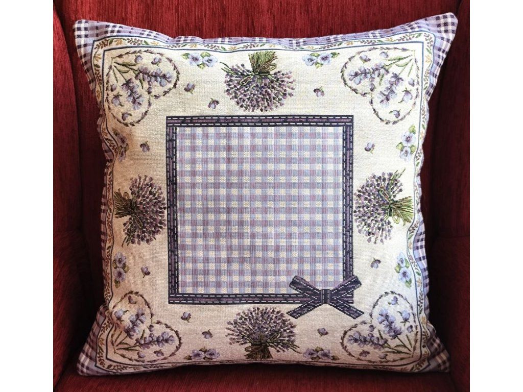 Vyšívaný gobelínový povlak chenille na polštář s romantickým motivem na přírodním podkladě.