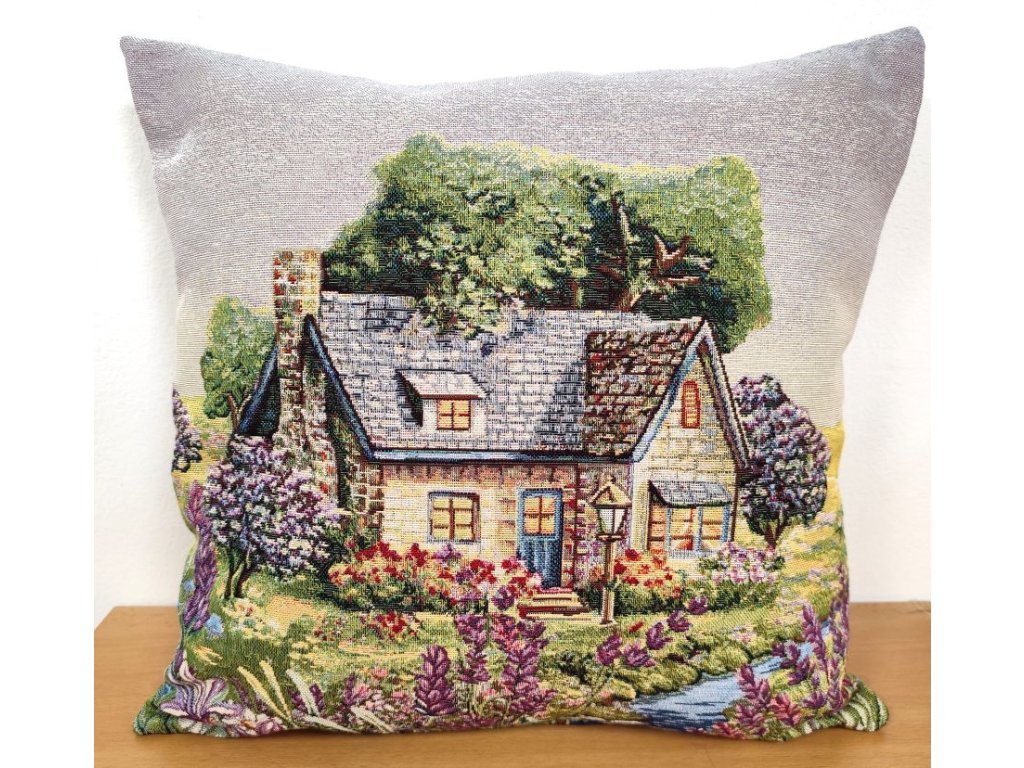 Vyšívaný gobelínový povlak na polštář s kouzelným motivem květů a motýlků.