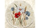 Malé gobelínové prostírání 20x20 cm s motivem máku a kopretin.