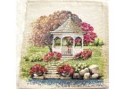 Malé gobelínové prostírání 20x20 cm s motivem zahradního altánu.
