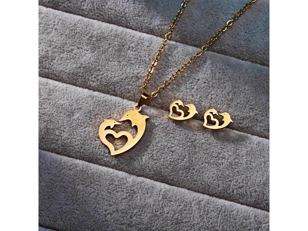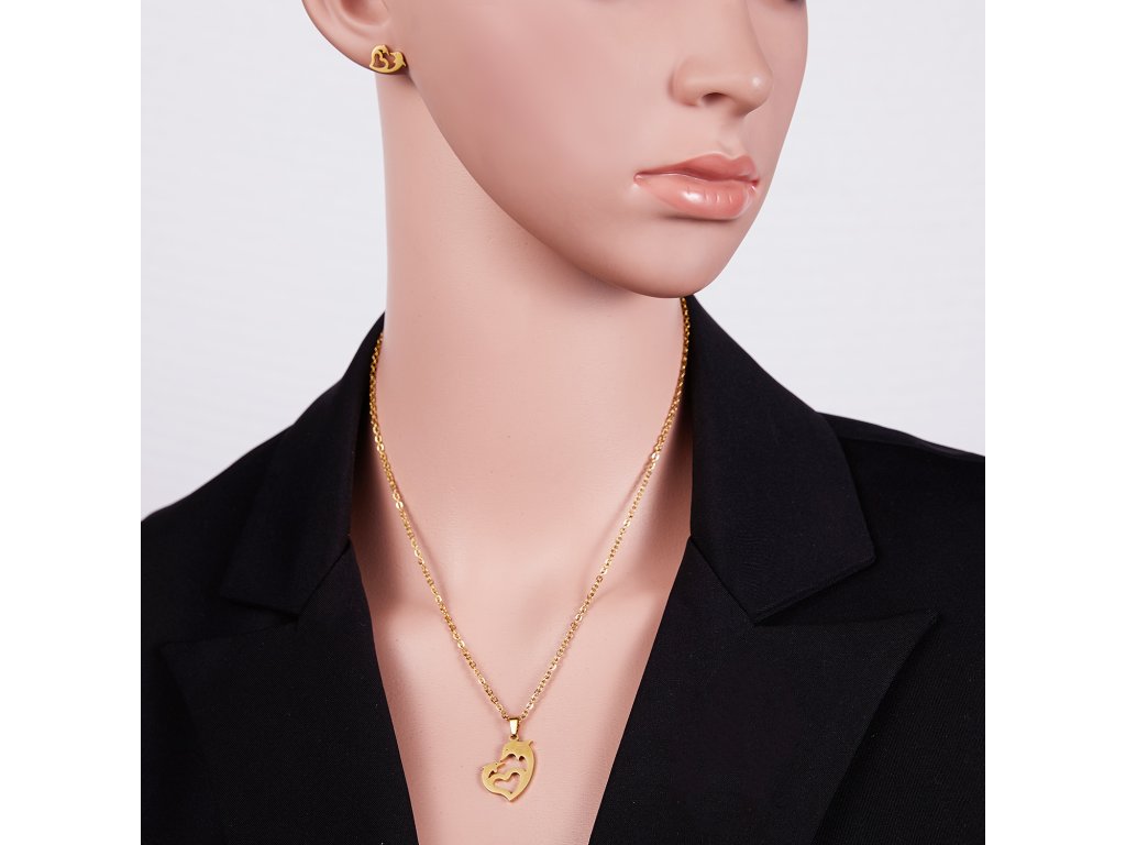 Kouzelná souprava z nerezové oceli v barvě zlata - řetízek s přívěskem a náušnice. Zapínání náušnic - puzeta.
