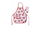 Dětská zástěrka a chňapka s motivem kočiček ze 100% bavlny s červeným lemováním.